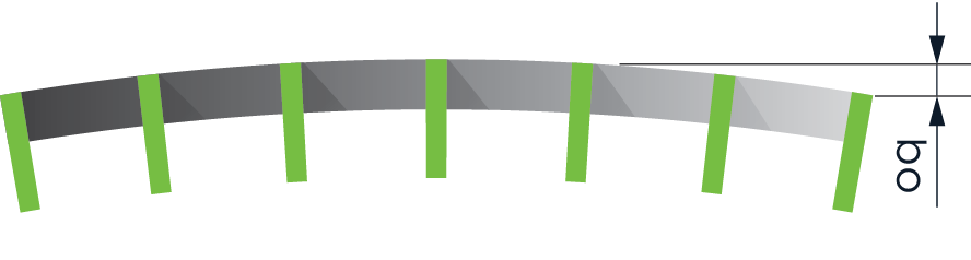 xq max. = 1/150 від довжини смуги для настилу SP;