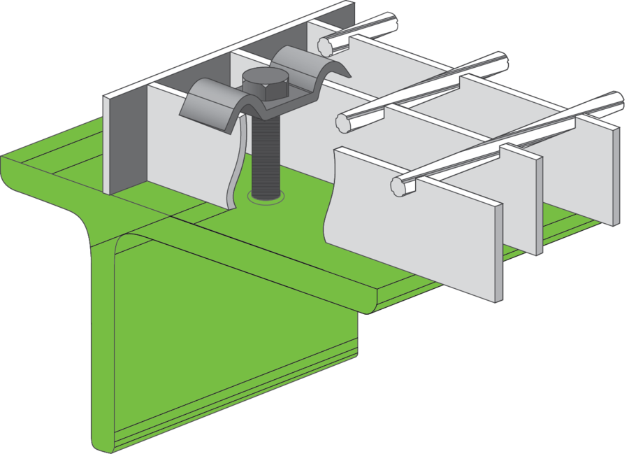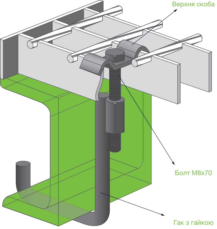 Стандартне кріплення найбільш універсальний тип кріплень, який використовується для монтажу решіткового настилу на елементи, які мають поличку – тавр, двотавр, швелер, кутник