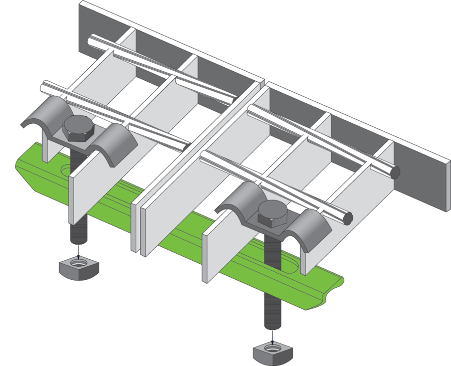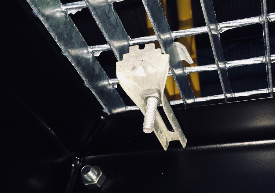 Однією із суттєвих переваг решіткового настилу є простота кріплень решіток. Решітковий настил за допомогою типових кріплень, які виготовляються нашим заводом, можна закріпити практично до будь-якого елементу несучого каркасу – двотавр, швелер, кутник, профільна труба. Кріплень решіток відбувається без застосування зварювання, що дозволяє зберегти антикорозійний захист. Для монтажу необхідно лише найпростіший інструмент, який є на кожному будівництві – звичайні гайкові ключі. Для розрахунку кількості кріплень діє стандартне правило – 4 шт. на 1 м2, але не менше, ніж 4 шт. на одну решітку. Тобто, якщо решітки поставляються невеликого розміру, наприклад 700х652 мм, для надійної фіксації на таку решітку потрібно також 4 шт. кріплення. В разі, якщо на одному рівні необхідно використовувати кілька типів кріплень, на монтажних схемах вказується, які кріплення потрібно встановлювати в тому чи іншому місці. Всі типи кріплень є максимально непомітними та забезпечують комфортне та безперешкодне пересування по настилу як пішоходів так і колісної техніки.