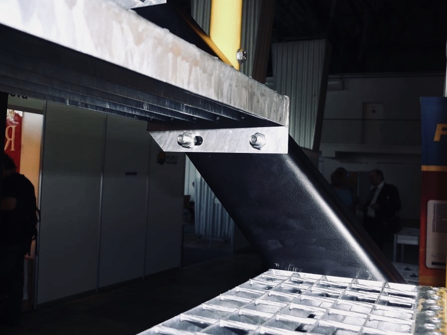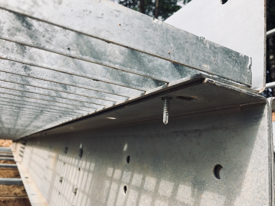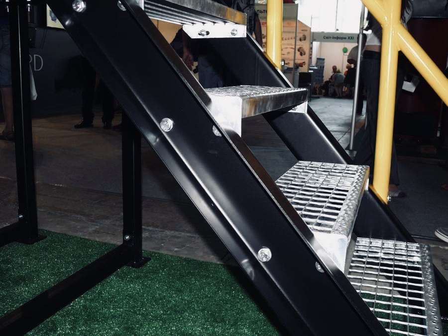 Кріплення сходинок до косоурів відбувається за допомогою звичайних болтів з гайками та шайбами. В стандартному варіанті постачаються гарячеоцинковані болти М8х35.