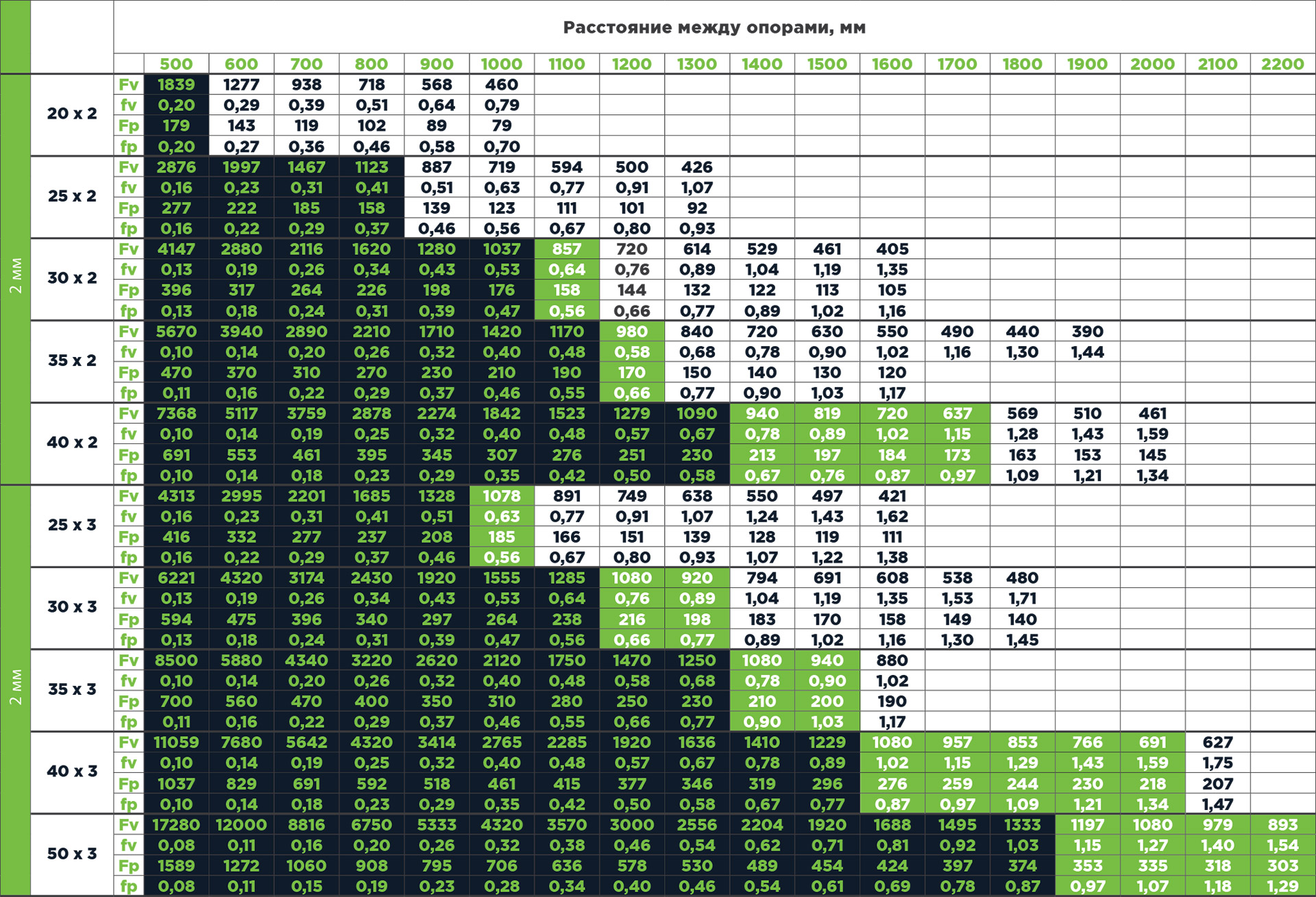 | от 20 х 2 до 50 х 3 | 11,11 | 91 | 2,93 |