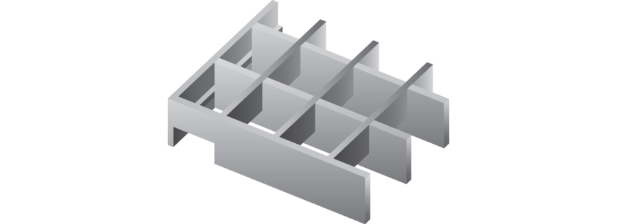 Висота обрамлення менша на 5 мм від висоти несучої смуги. Застосовується у випадку, якщо решітки укладається на опори із заокругленими внутрішніми кутами, які можу мішати встановити решітку в проектне положення.