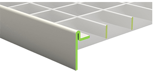 Обрамлення торців решітки кутником, який одночасно є опорною частиною решітки. Найбільш популярний варіант для стелажних систем у зв’язку із легкістю виконання і відповідно, доступністю за ціною. Застосовується як для зварних так і для пресованих решіток.